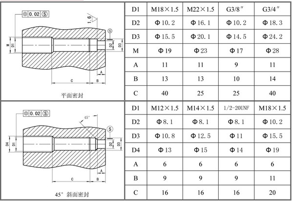 工藝連接:1/2”-20 UNF,M14× 1.5,M18× 1.5,G3/4(客戶定義)
